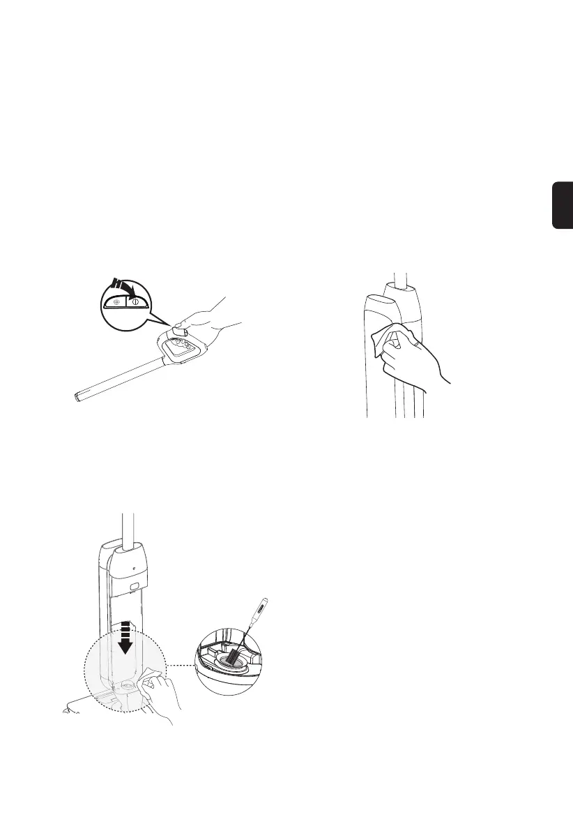 • Après l’entretien, placez l’appareil verticalement sur la station de recharge. N’exposez pas