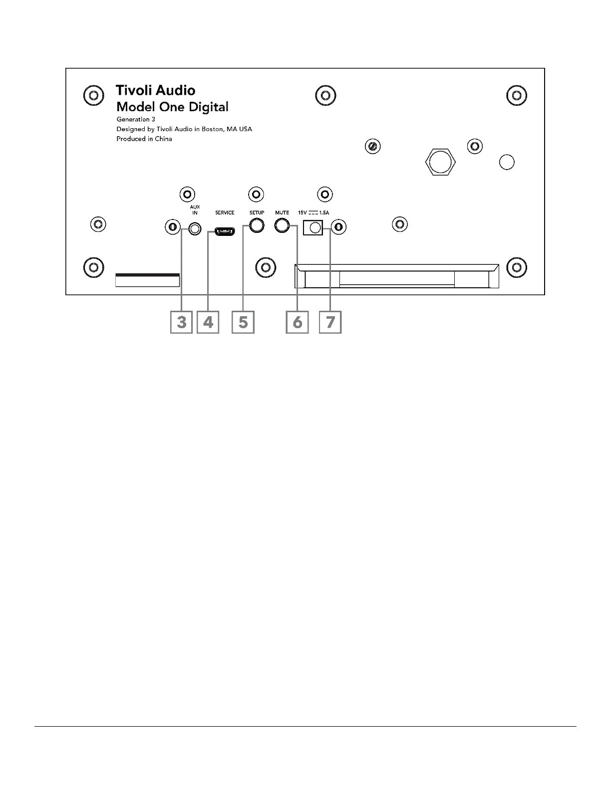 7. DC Power: Plug in the provided Tivoli Audio power adapter to power your Model One Digital.