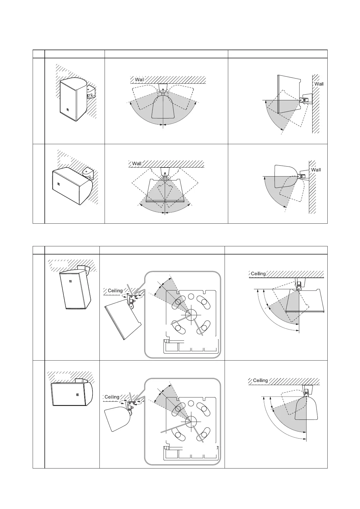 Installation examples Horizontal angle adjustment range Vertical angle adjustment range