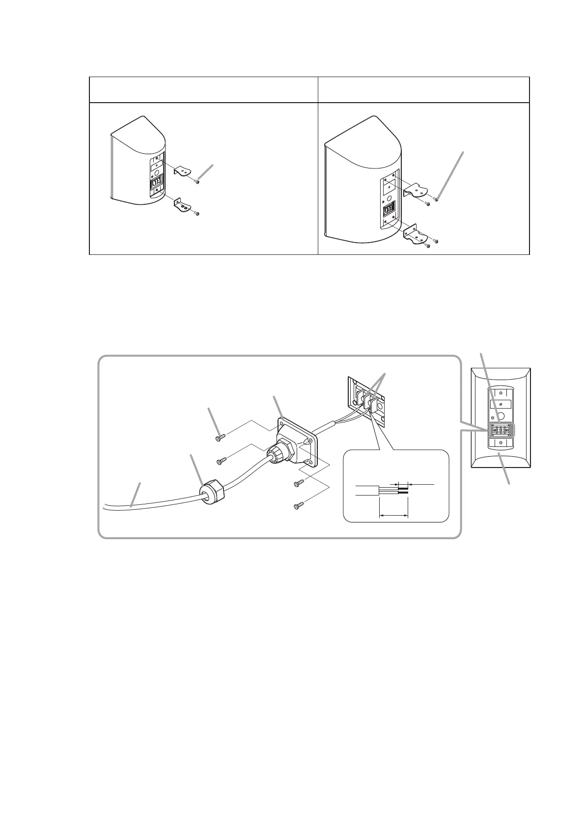 • Be sure to pass the speaker cable through the supplied terminal cover.