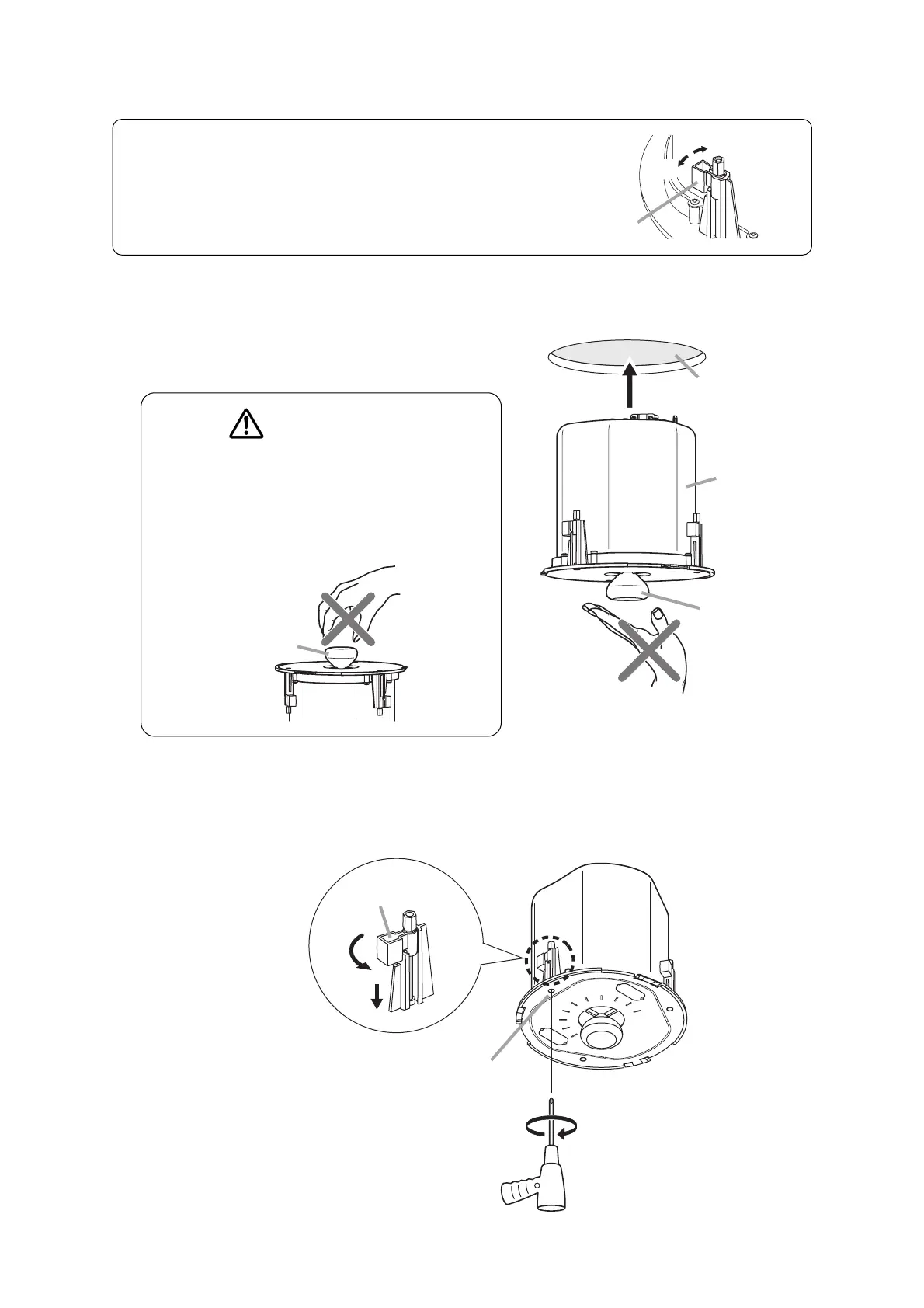 Step 2. Rotate and tighten the mounting tab axis screws (3 places) on the unit clockwise to their full stop in
