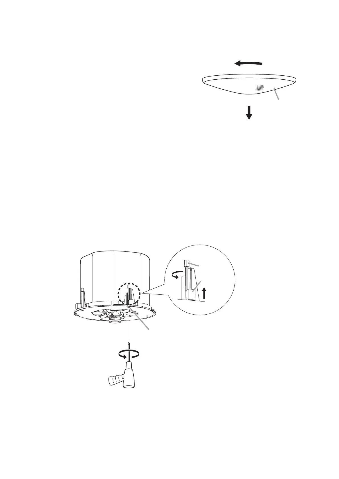 When loosening the mounting tab axis screws, support the speaker by hand to prevent it from falling.