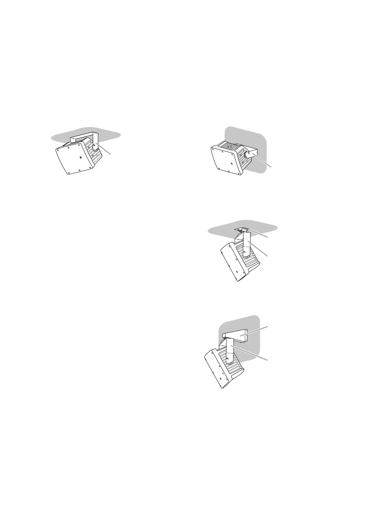 • They allow speaker’s vertical angle to be adjusted. (Ceiling: From 0° horizontal to 90° downward, Wall: From