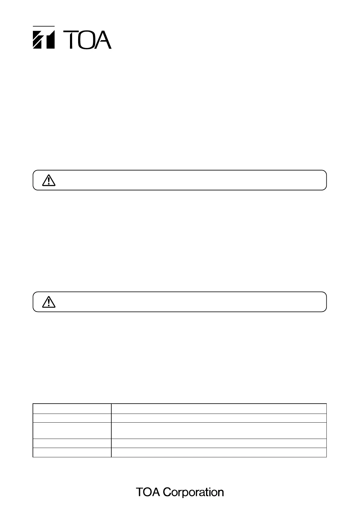 • Leave the installation to your TOA dealer because the installation requires expert knowledge. Improper