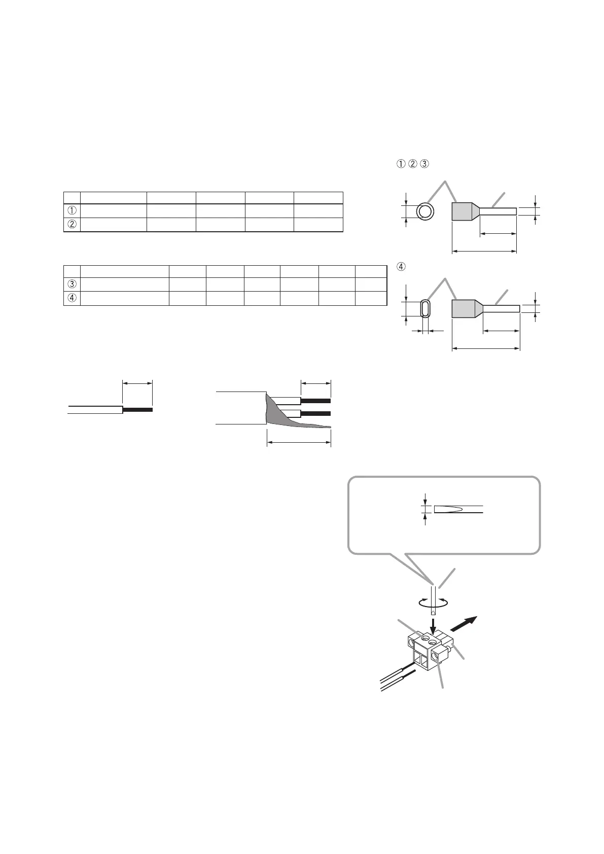 • When connecting 2 cables or a shielded cable to a single terminal, use a ferrule terminal with an insulation