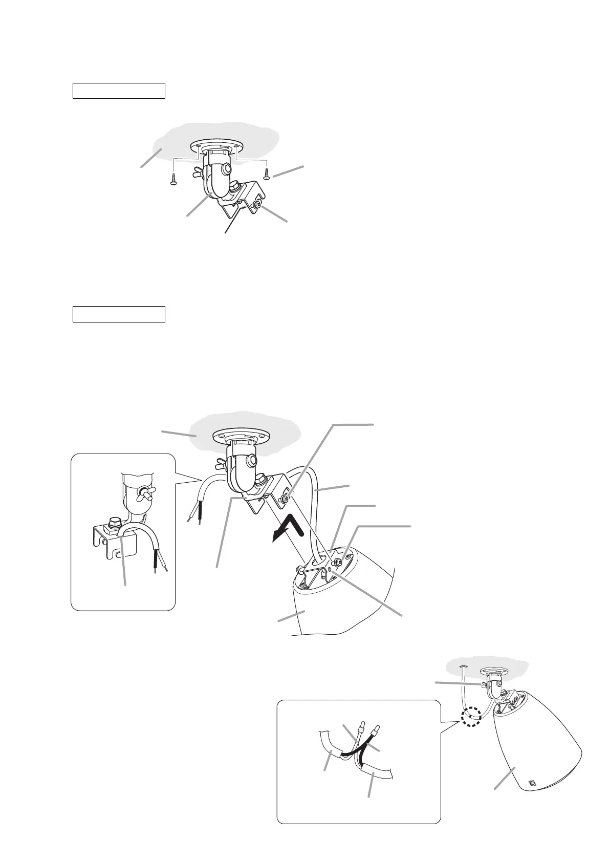 Step 1. Secure the swivel bracket to the ceiling or wall with 3 screws.