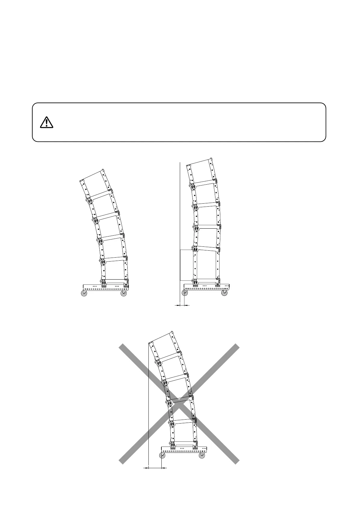 • When stacked, the Line Array speaker’s front or rear deviation from the Rigging Frame must be within 10cm.