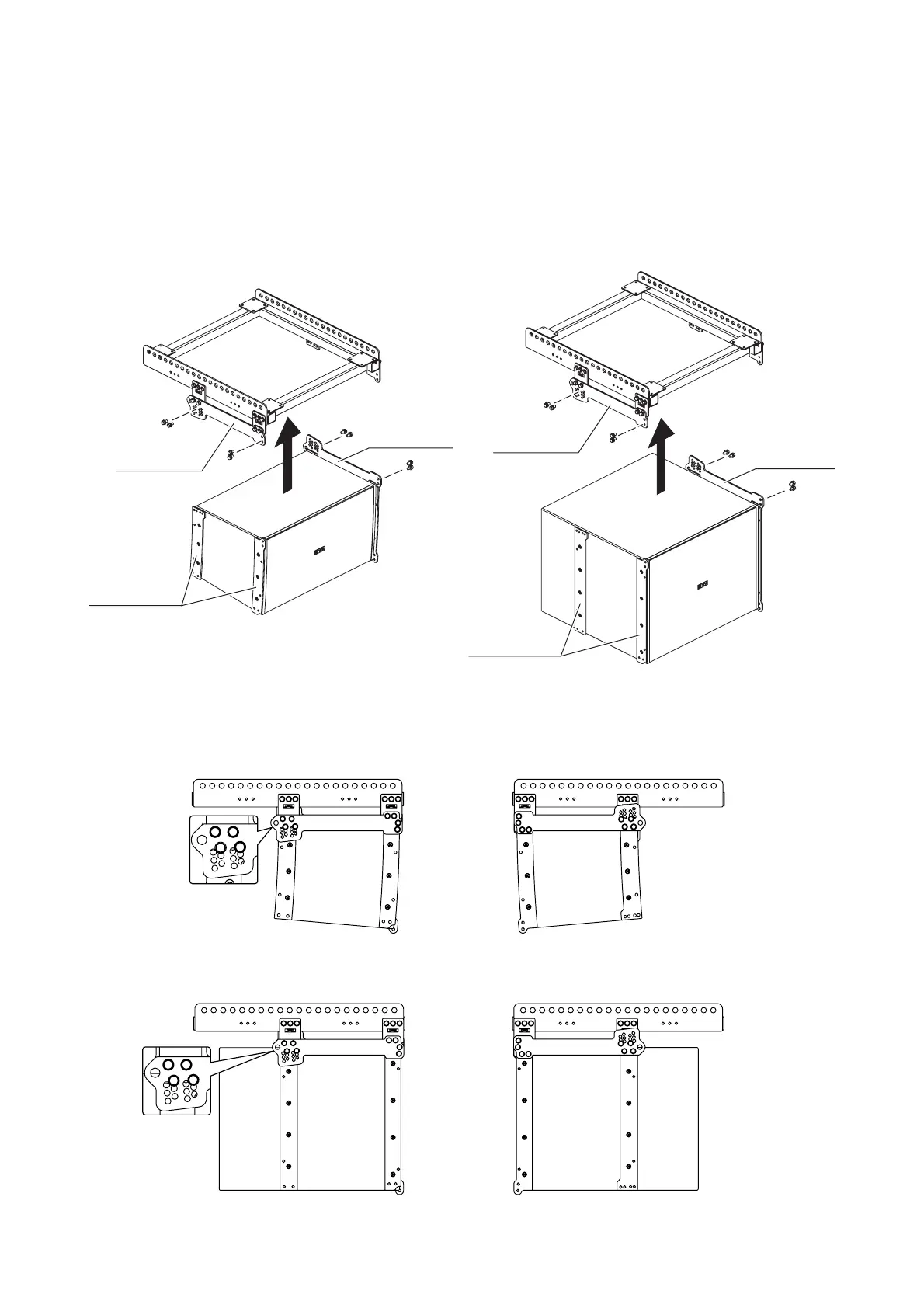 subwoofer is positioned at the top (directly below the Rigging Frame).