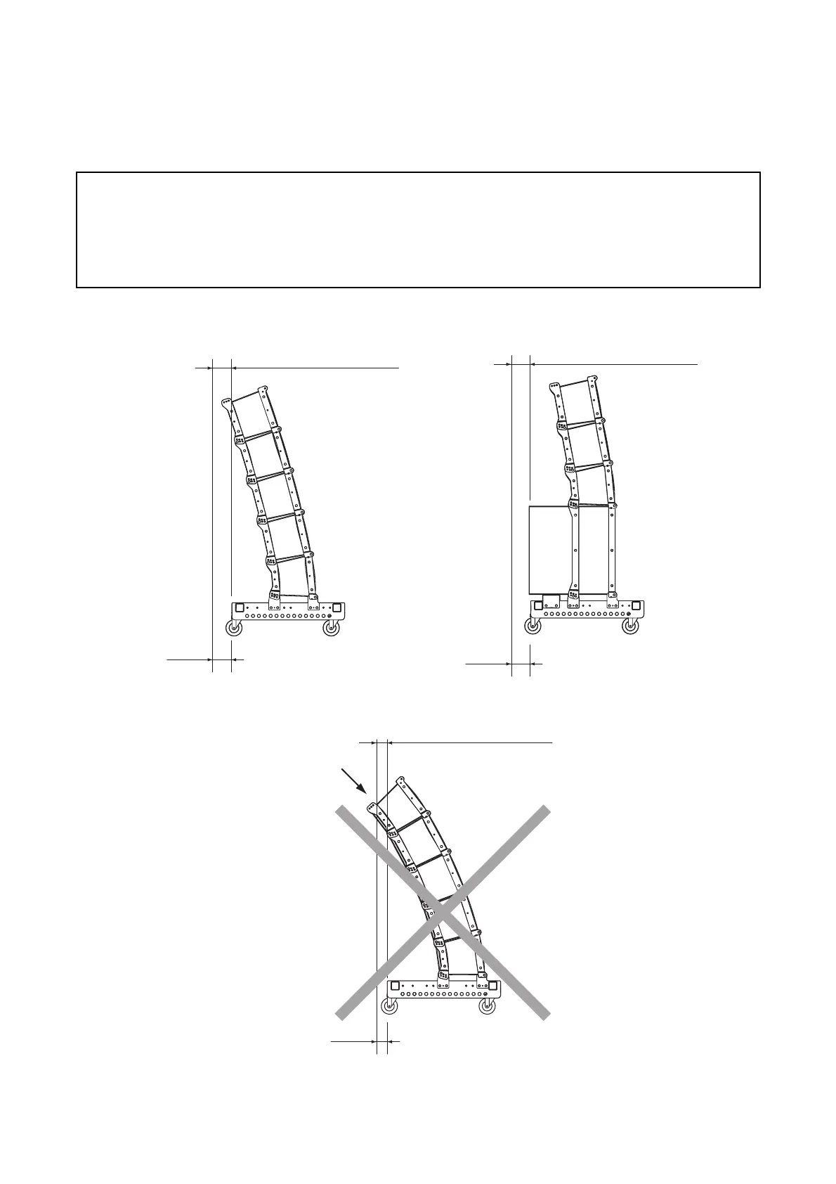 • When stacked, the overhang of the front or rear portion of the line array speaker cannot extend more than