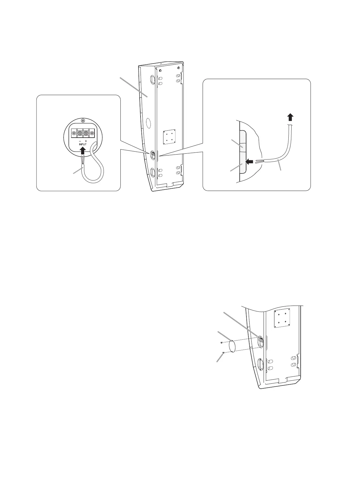 Step 1. Run the speaker cable through the cable entry hole in the speaker's rear panel, then lead it out from