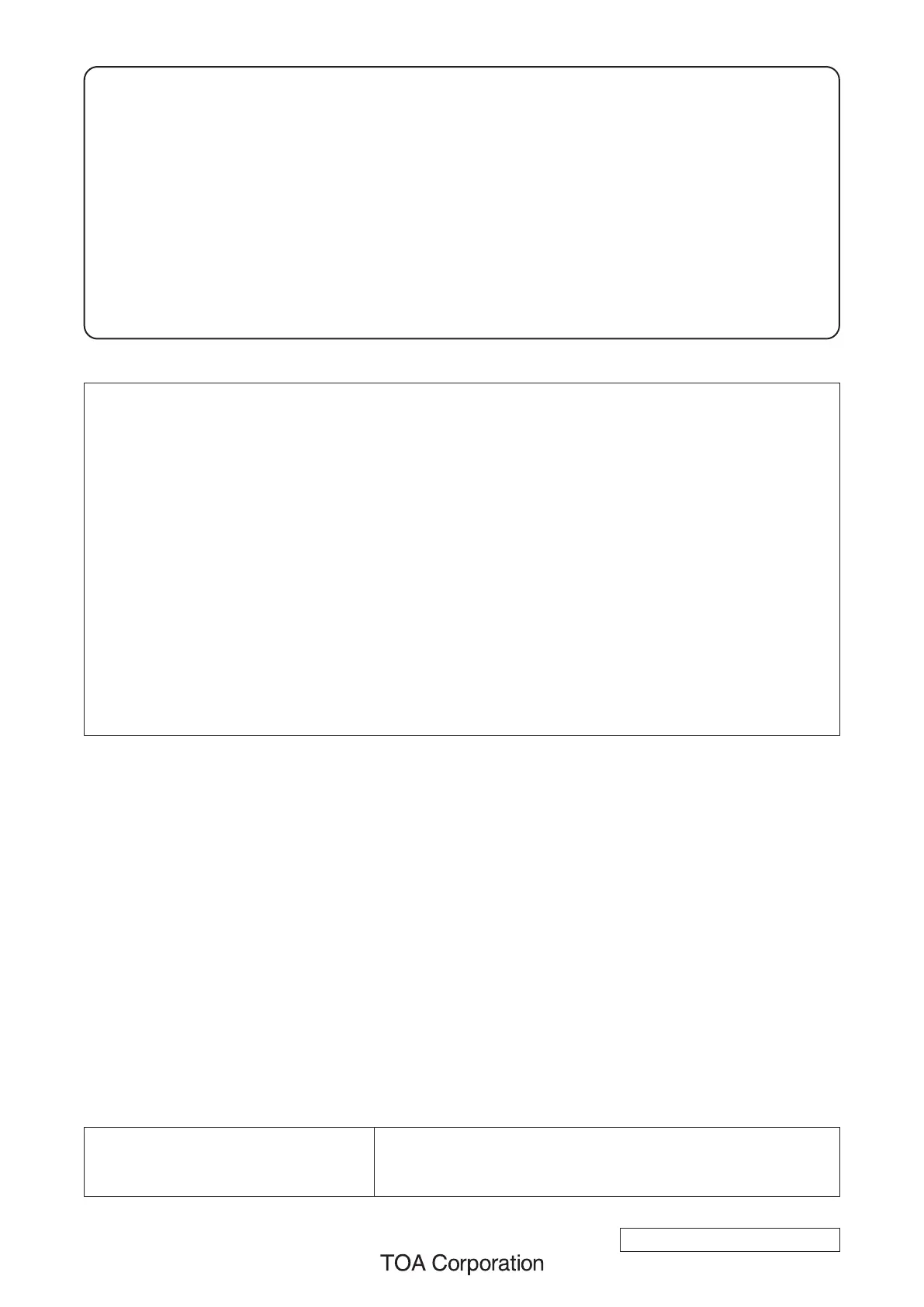 Any modications made to this device that are not approved by TOA Corporation may void the authority
