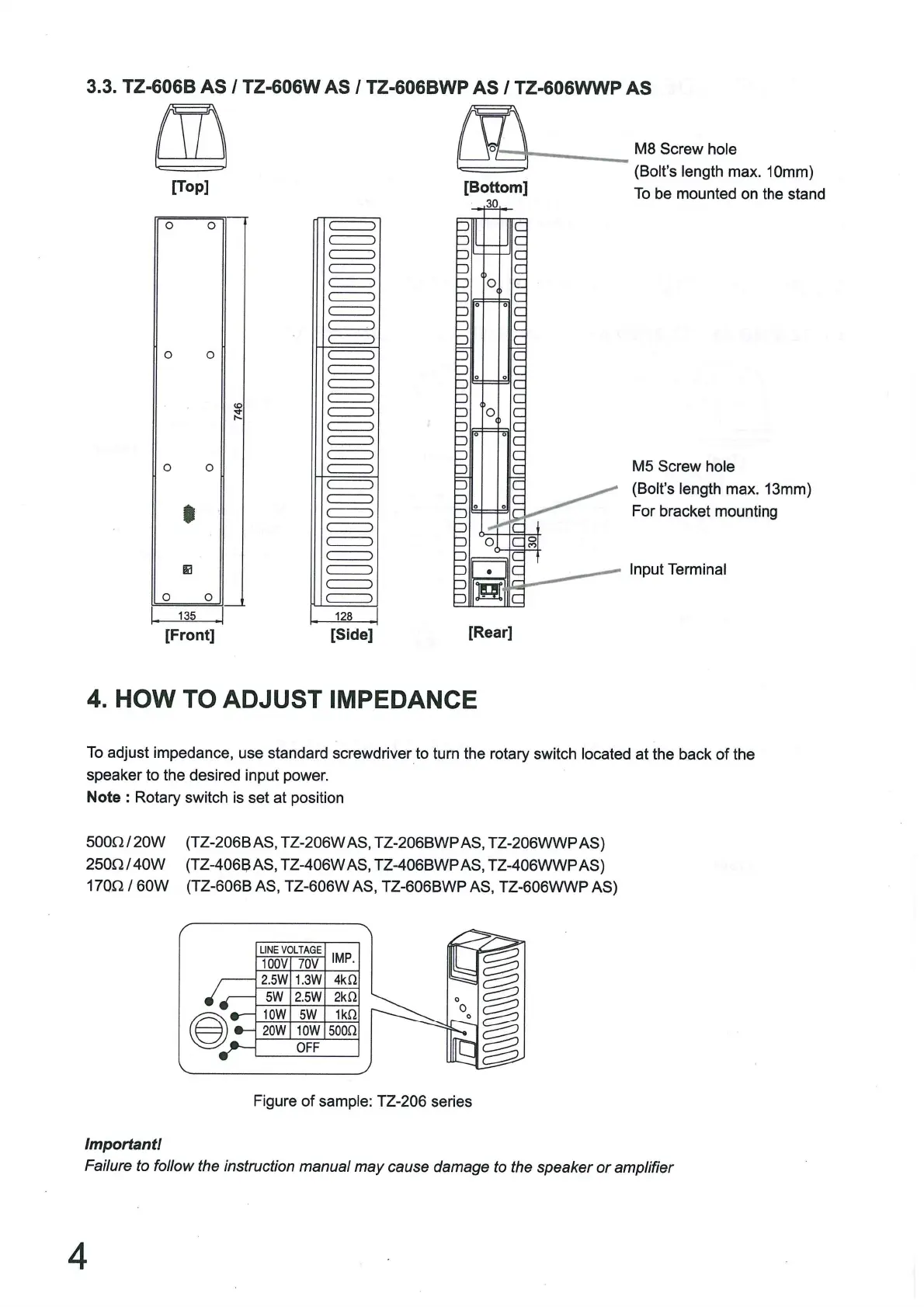 To adjust impedance, use standard screwdriver to turn the rotary switch located at the back of the