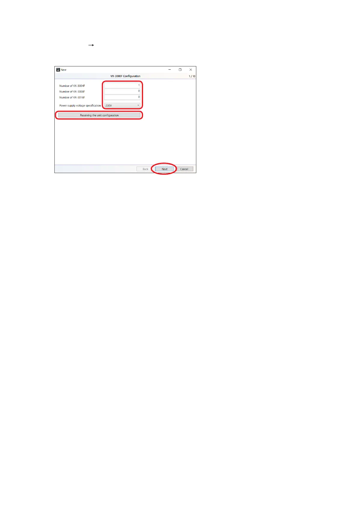 Step 2. Set the VX-3000F’s equipment conguration.