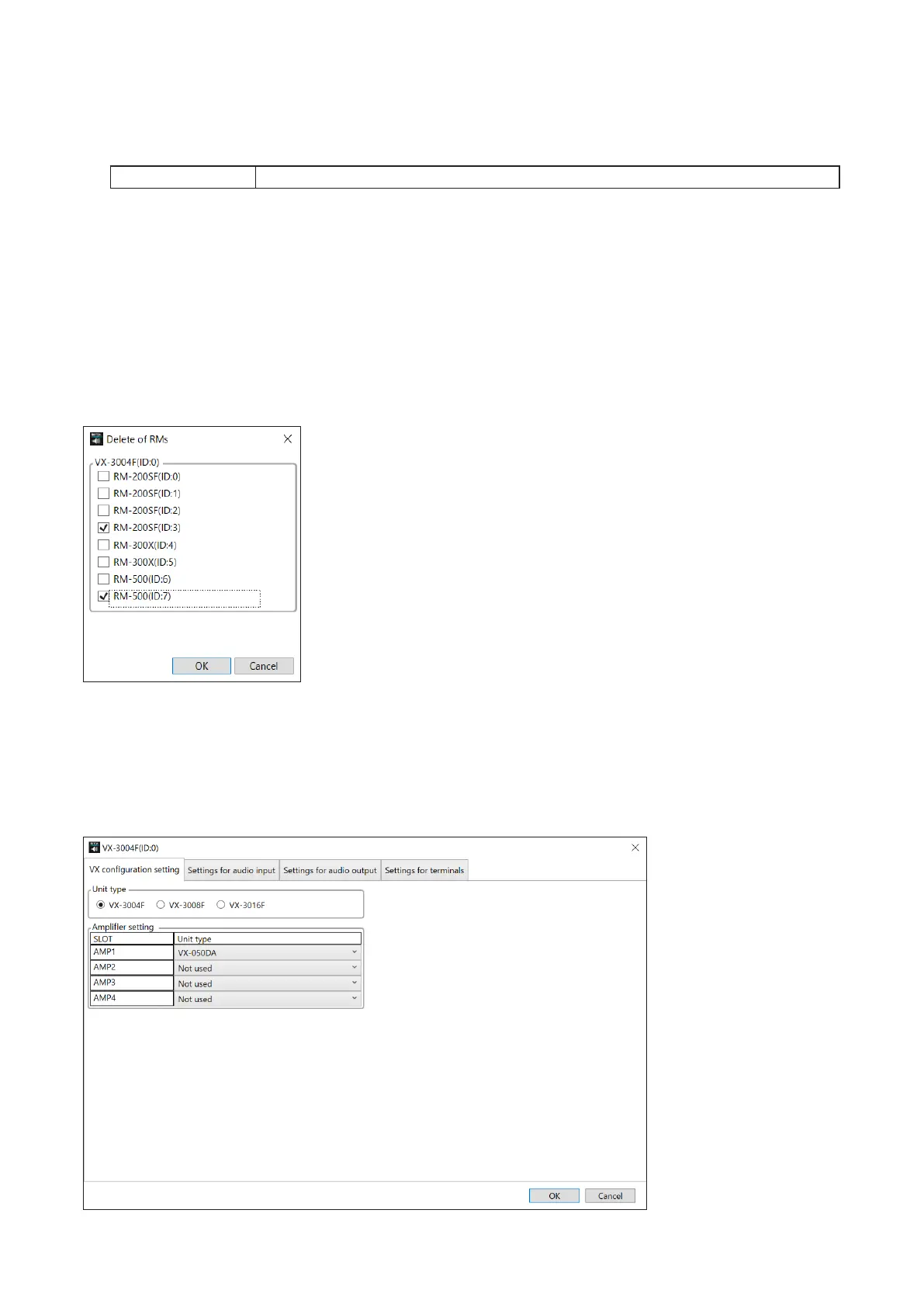 will be added to the VX-3000F designated in "Connected unit" (3), and the "Registration of RM" window will