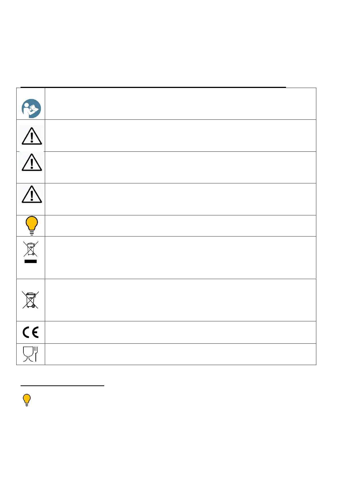 SYMBOLS IN THE MANUAL/PRODUCT AND THEIR MEANING