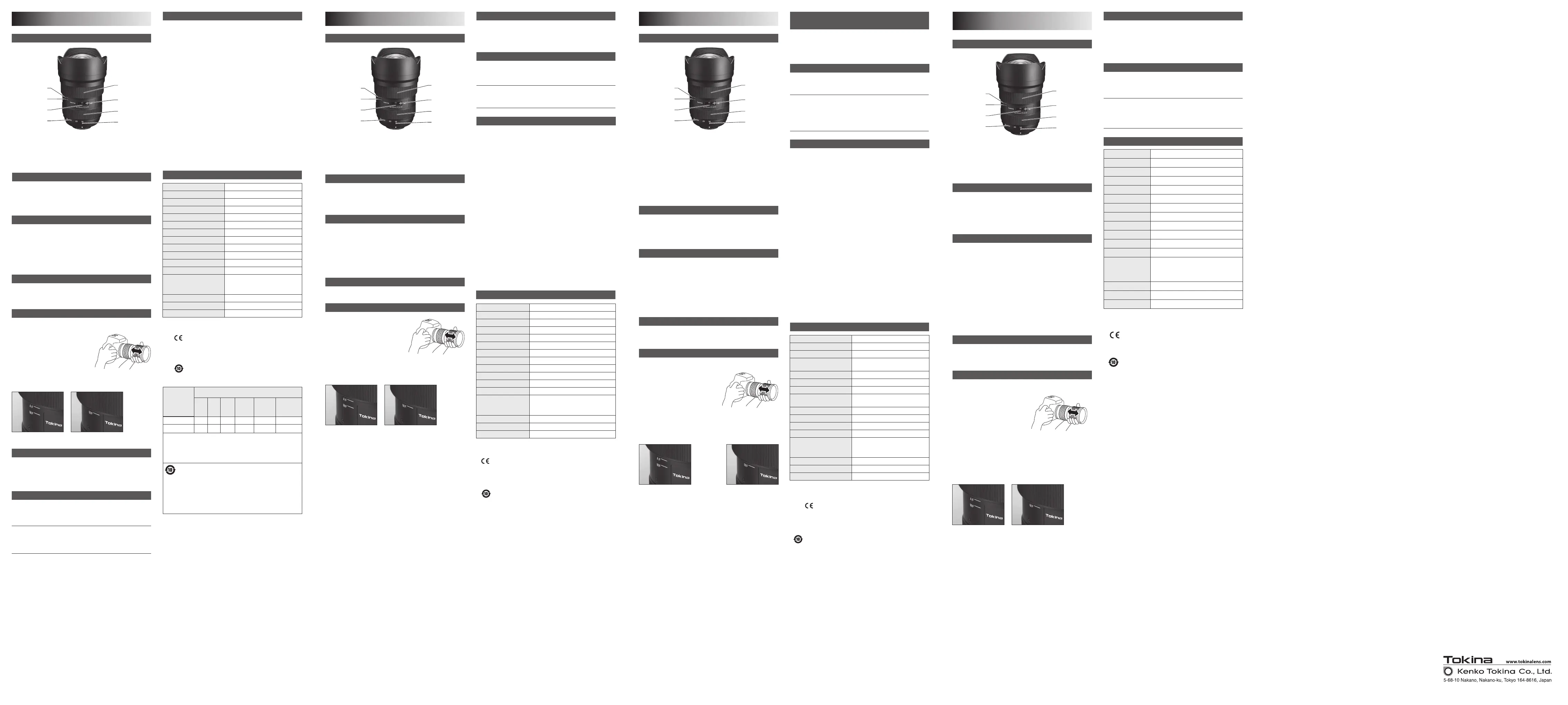 Bekijk gratis de handleiding van Tokina Opera 16-28mm F2.8 FF, stel vragen en lees de antwoorden op veelvoorkomende problemen, of gebruik onze assistent om sneller informatie in de handleiding te vinden of uitleg te krijgen over specifieke functies.
