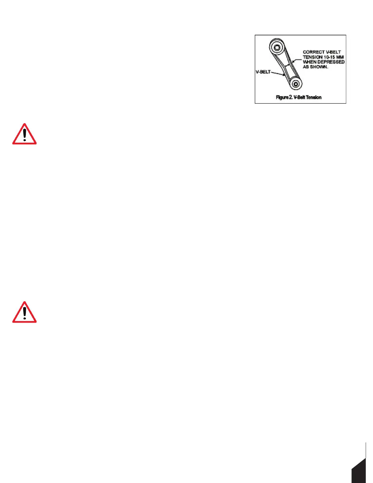 the V-belt tension (Figure 2). Tension is best if the belt bends about