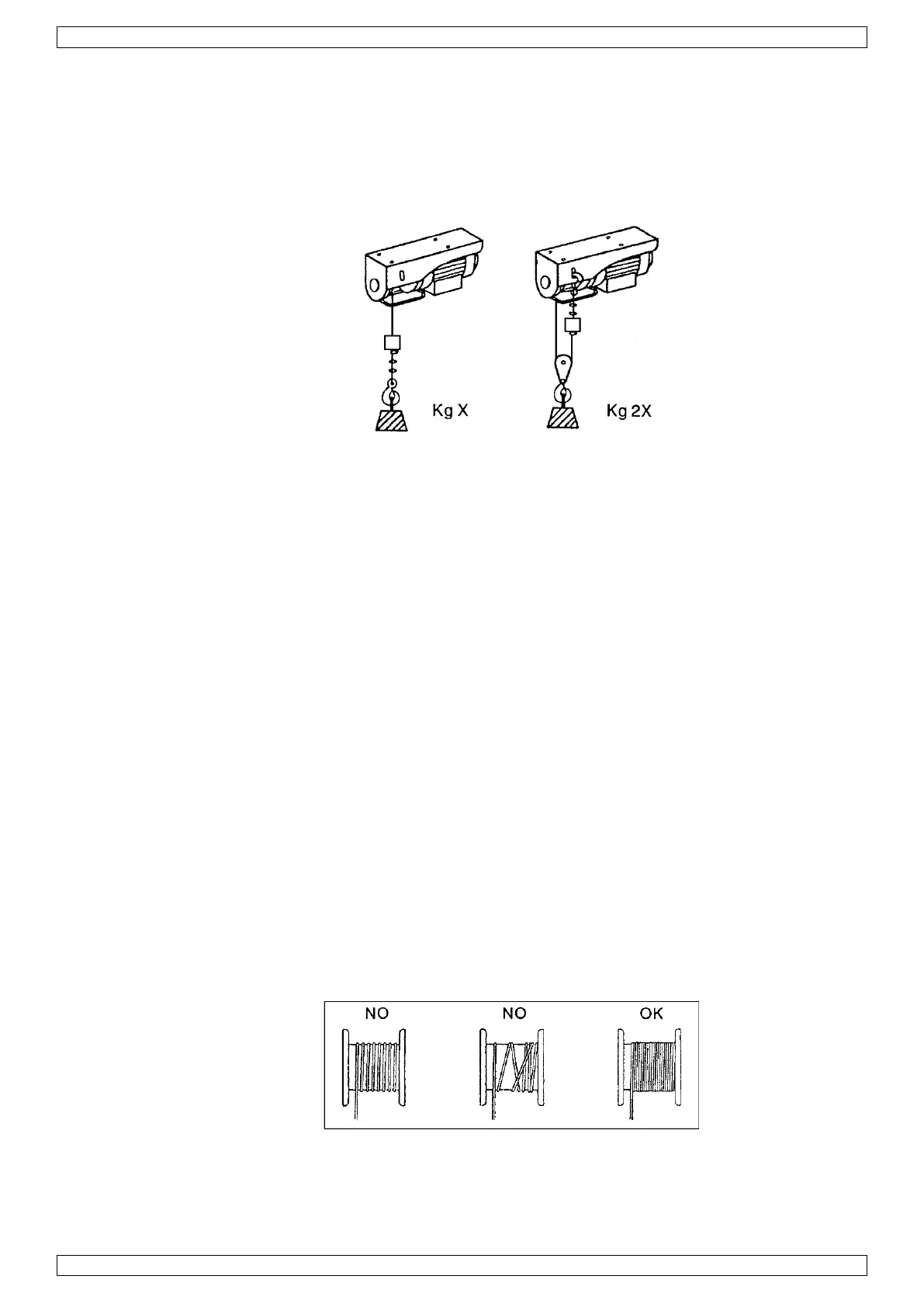 • Przed uruchomieniem należy upewnić się, że lina stalowa jest prawidłowo nawinięta na