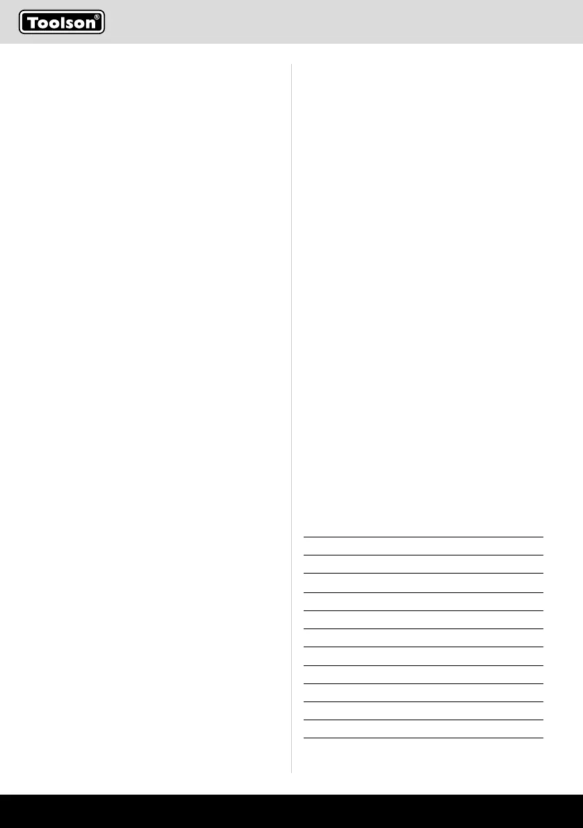 Bekijk gratis de handleiding van Toolson DWS225DC, stel vragen en lees de antwoorden op veelvoorkomende problemen, of gebruik onze assistent om sneller informatie in de handleiding te vinden of uitleg te krijgen over specifieke functies.