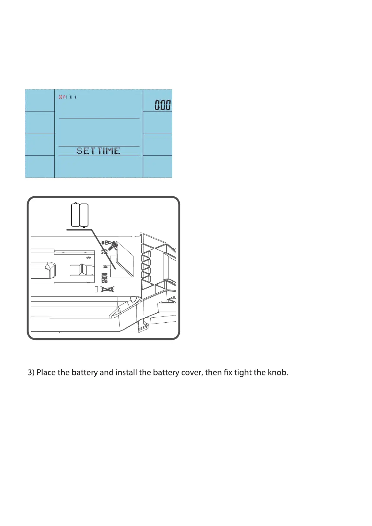 1) Loosen the knob of the battery cover.