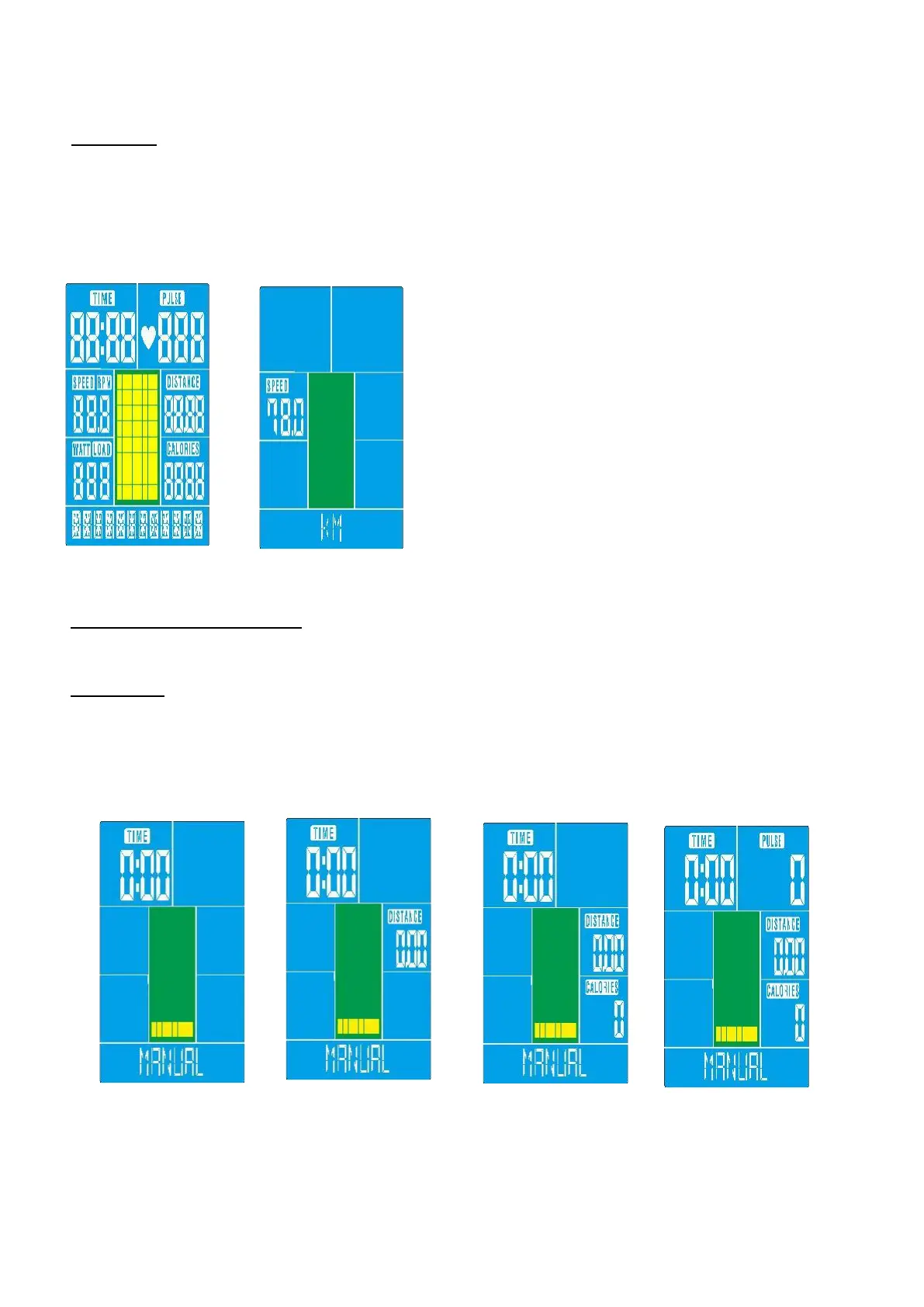 In Standby mode, user can UP and DWON to select: Manual Beginner Advance Sporty Cardio Watt,
