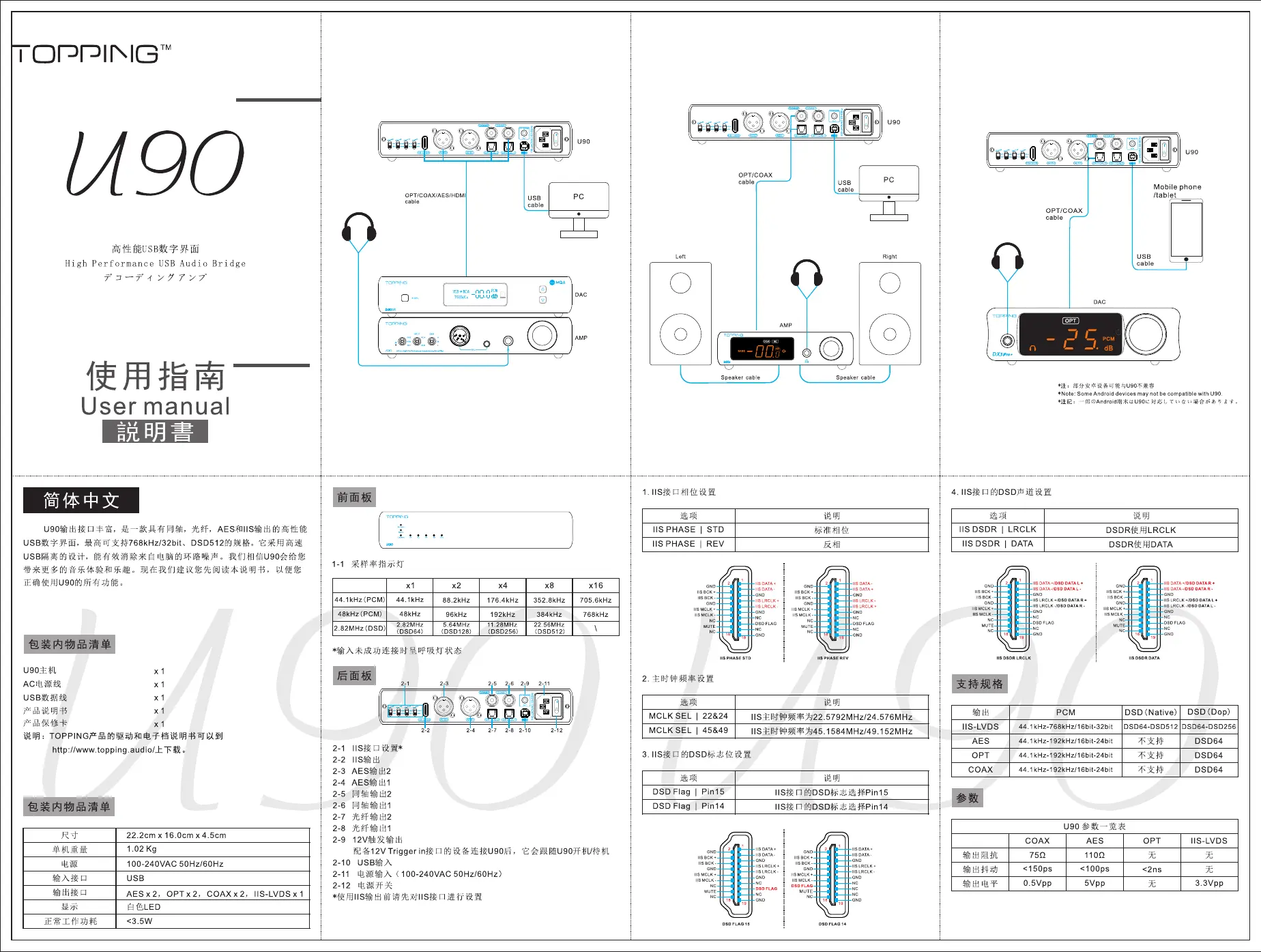 Bekijk gratis de handleiding van Topping U90, stel vragen en lees de antwoorden op veelvoorkomende problemen, of gebruik onze assistent om sneller informatie in de handleiding te vinden of uitleg te krijgen over specifieke functies.
