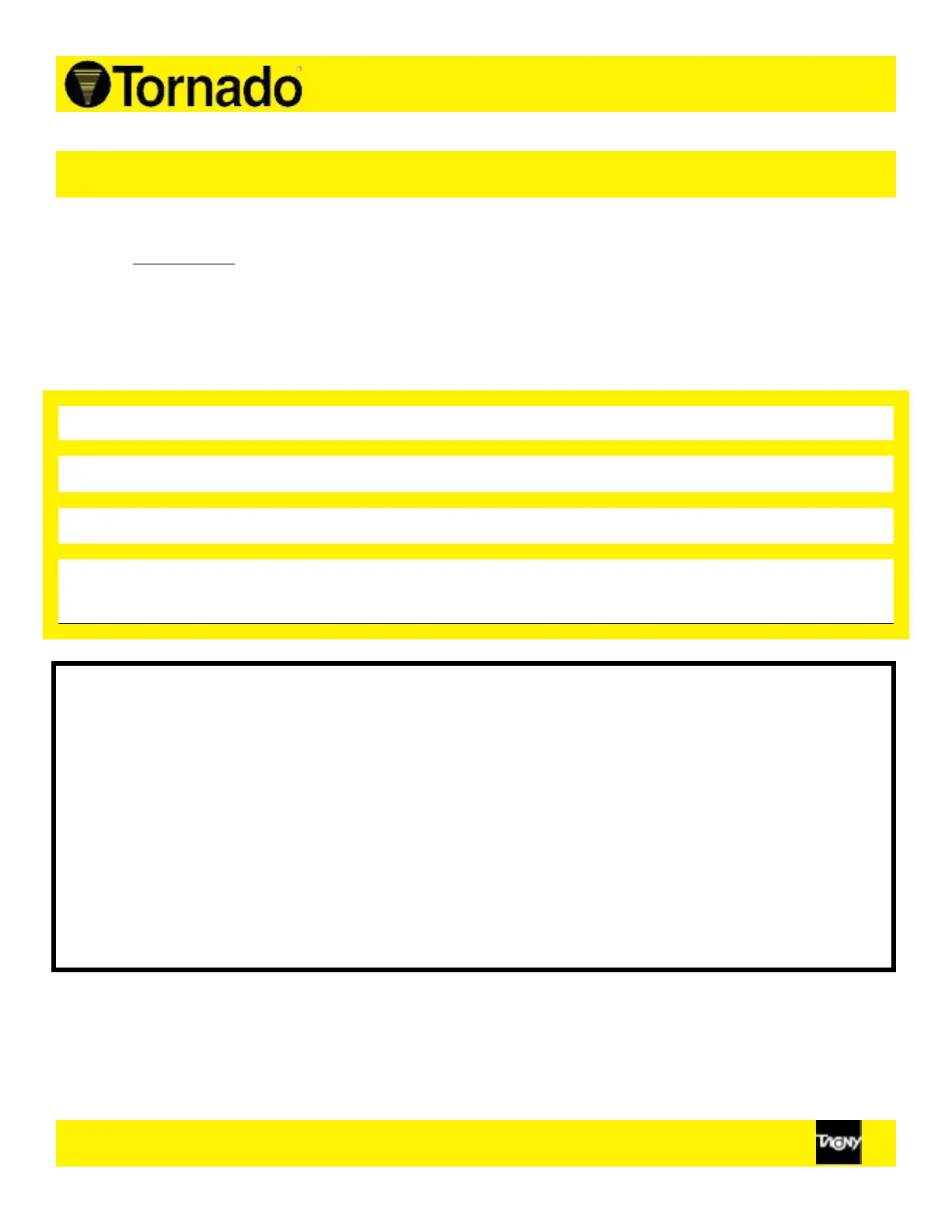 rized Tornado Distributor, Service Center, or the Tornado Technical Service Department. Tornado