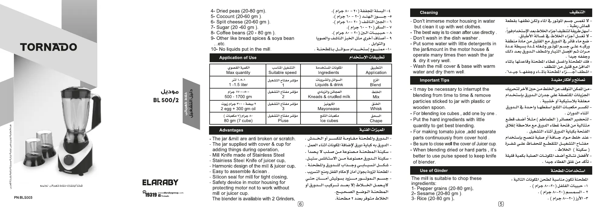 Bekijk gratis de handleiding van Tornado BL500/2, stel vragen en lees de antwoorden op veelvoorkomende problemen, of gebruik onze assistent om sneller informatie in de handleiding te vinden of uitleg te krijgen over specifieke functies.