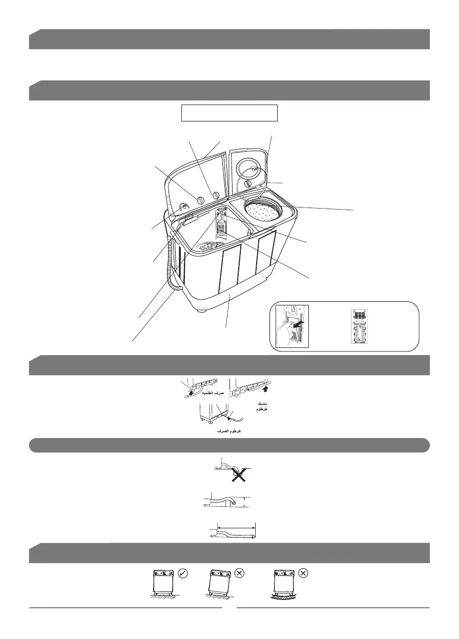 - Do not push the drain hose into the cabinet.