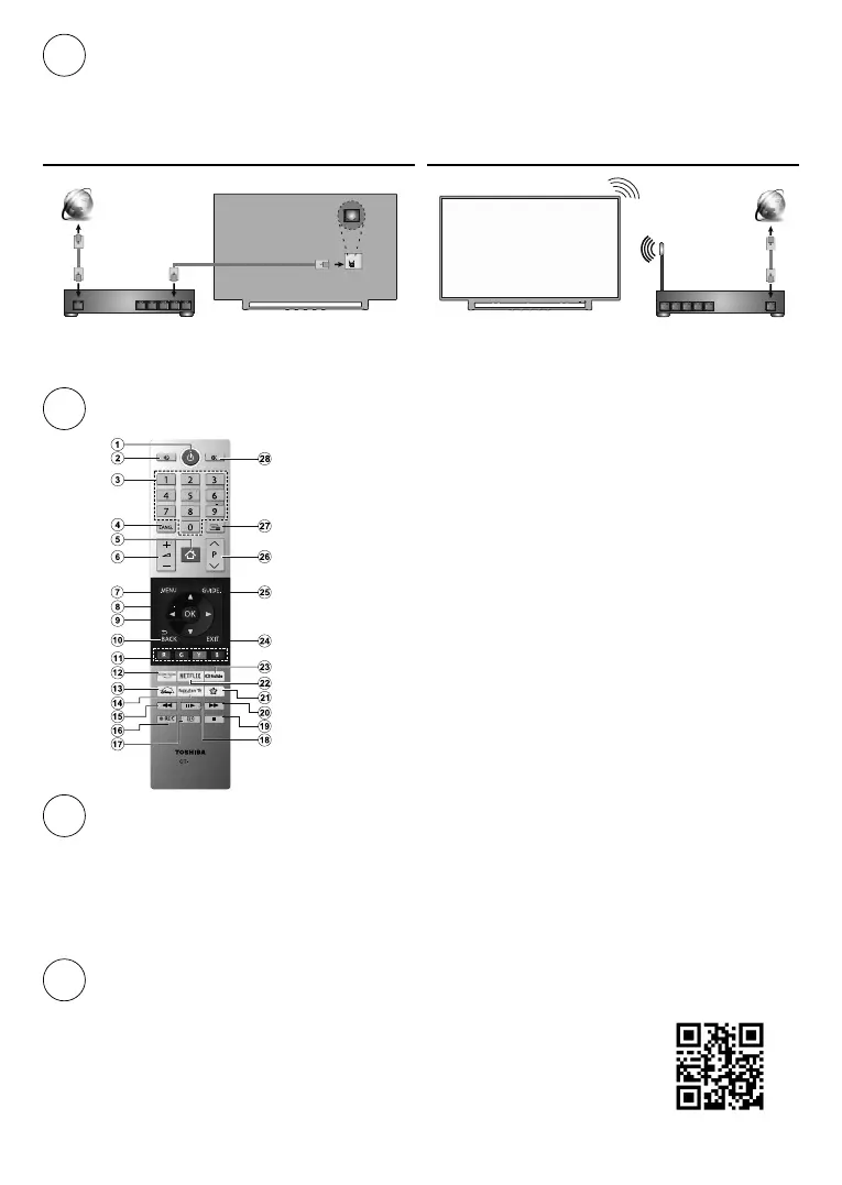Scannen Sie den QR-Code oder besuchen Sie https://toshiba-tv.com