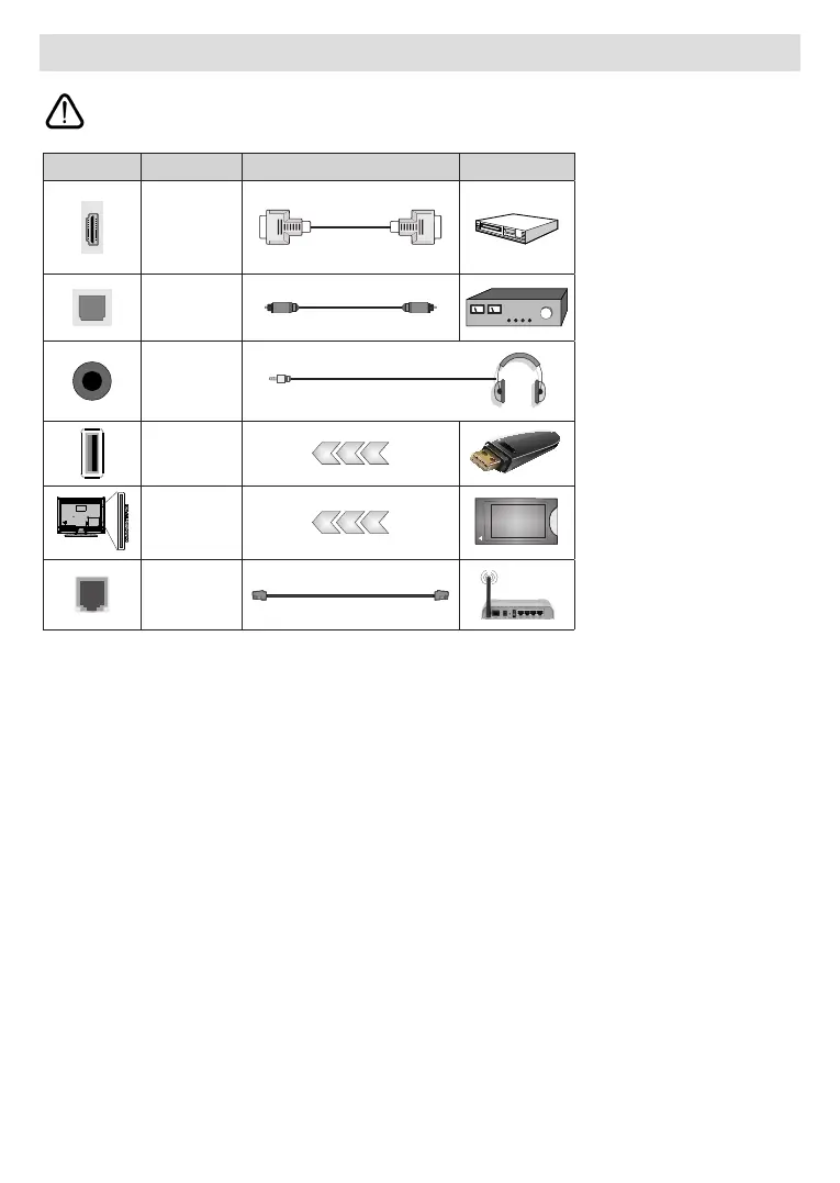 If you want to connect a device to the TV, make sure that both the TV and the device are turned o before making