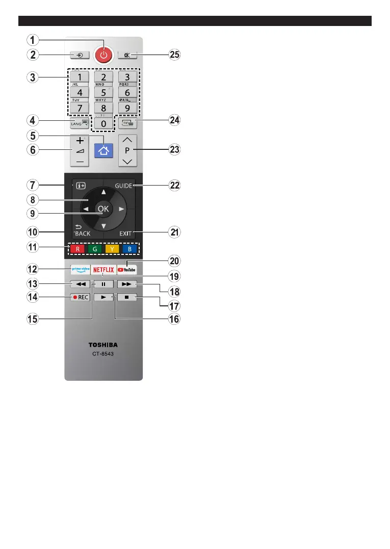 3. Numeric buttons: Switches the channel, enters