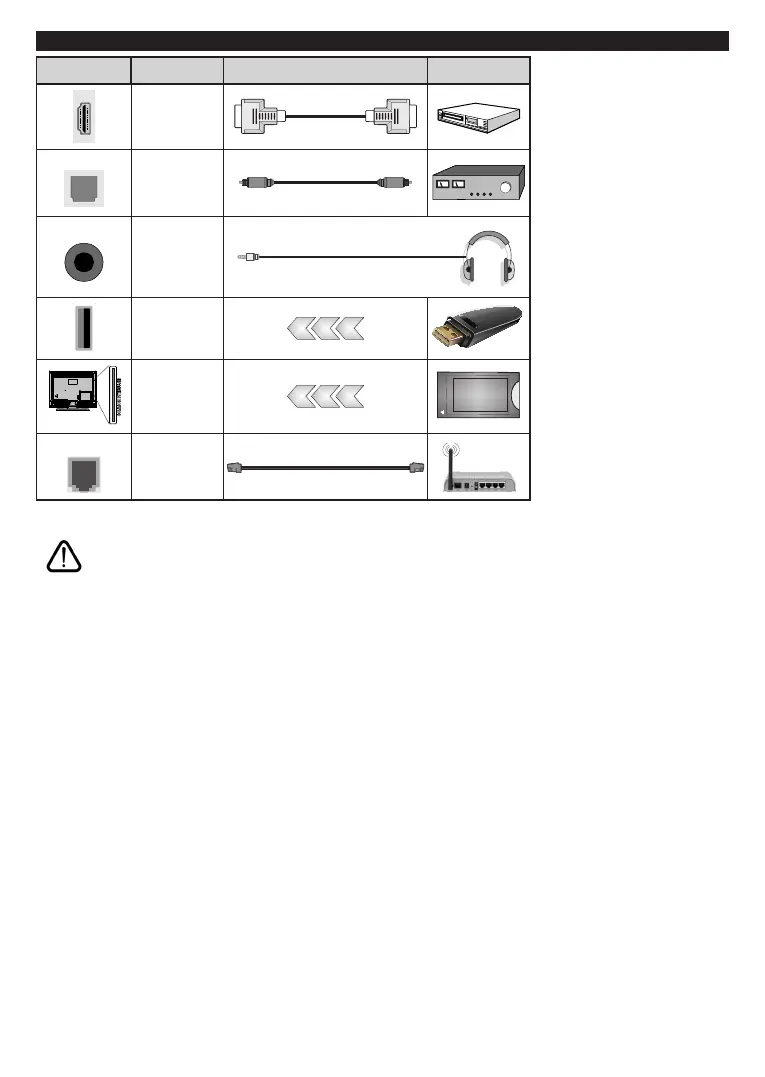 If you want to connect a device to the TV, make sure that both the TV and the device are turned off before making
