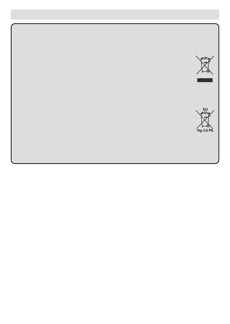 The crossed out wheeIed dust bin symbol indicates that products must be collected and disposed of separately