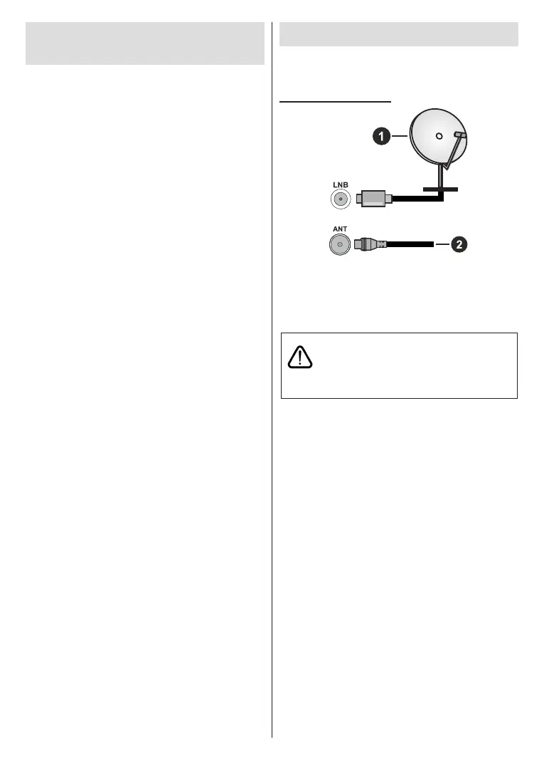 (ANT) socket or satellite plug to the satellite input (LNB)