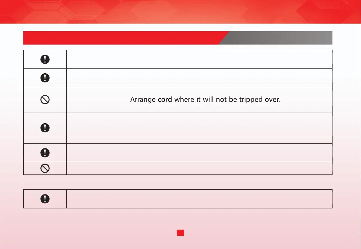 acid, etc.; Do not place water containers, medicines, or flammable materials on
