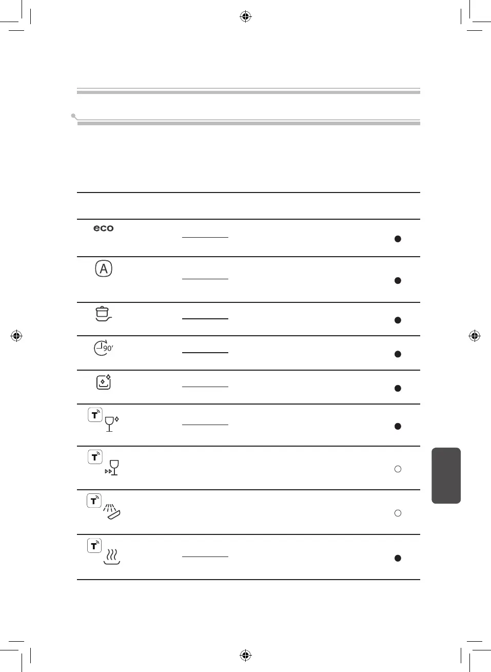 Bảng dưới đây hiển thị chương trình phù hợp với mức độ bẩn của bát đĩa và lượng chất