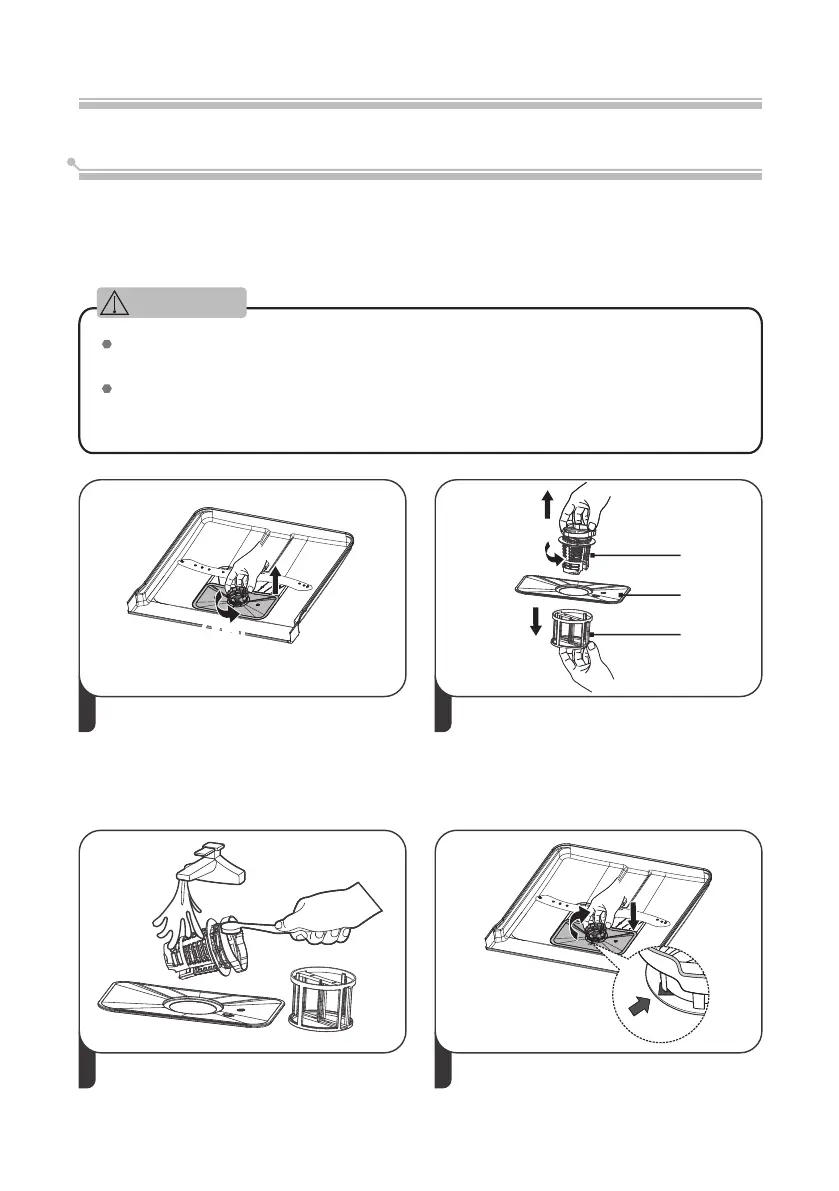Never use the dishwasher without lters in place. Improper replacement of the lter