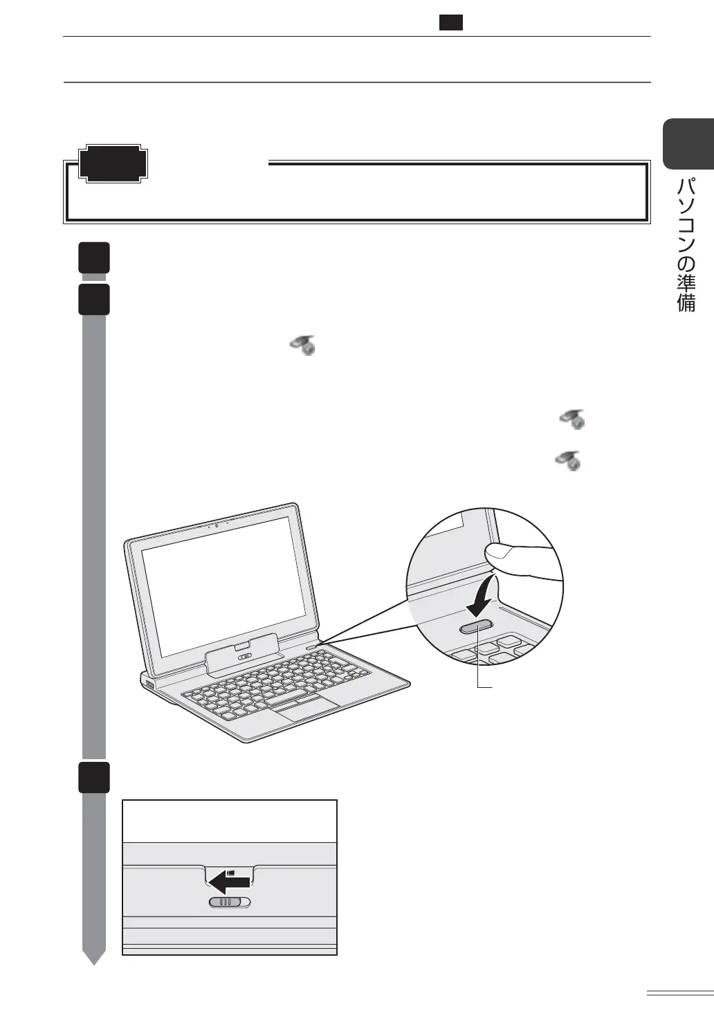 キーボードドックのラッチノブを左側(解除側)にスライドする