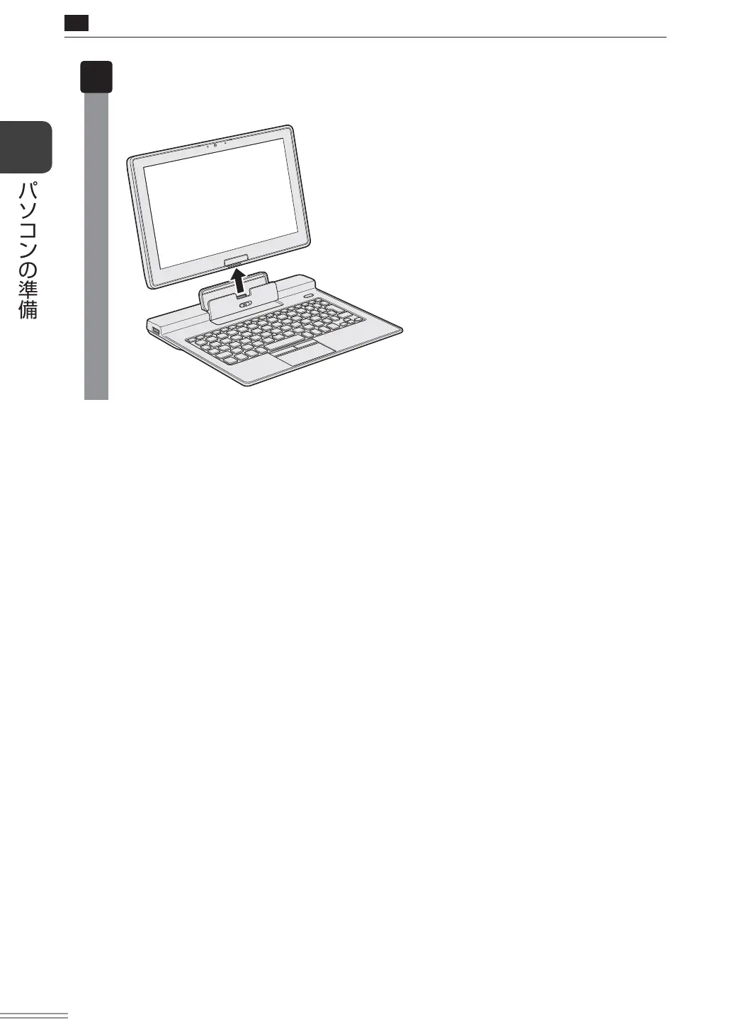 キーボードドックをしっかりおさえて、タブレットを持ち上げてください。