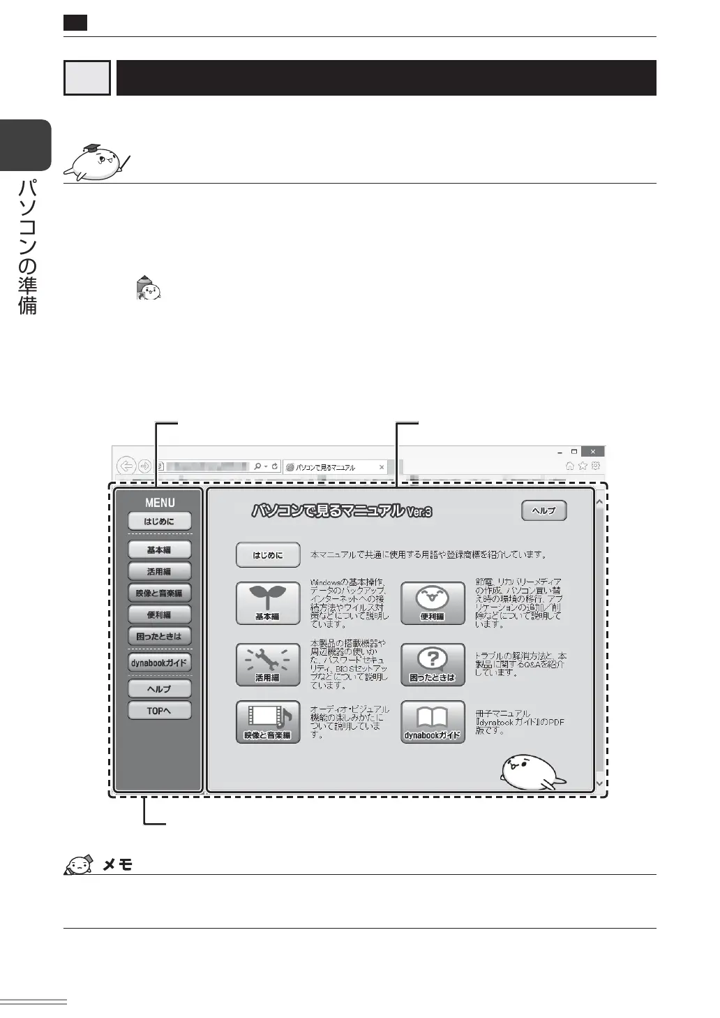 起動すると『パソコンで見るマニュアル』のトップページが表示されます。
