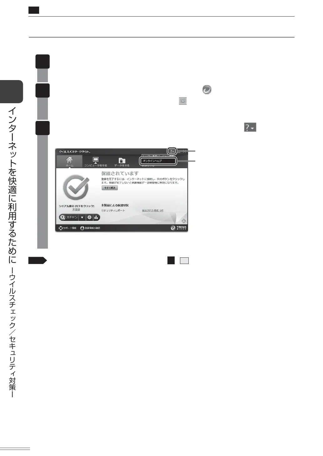 [ウイルスバスタークラウド]画面で[ヘルプ]ボタン( )をクリッ