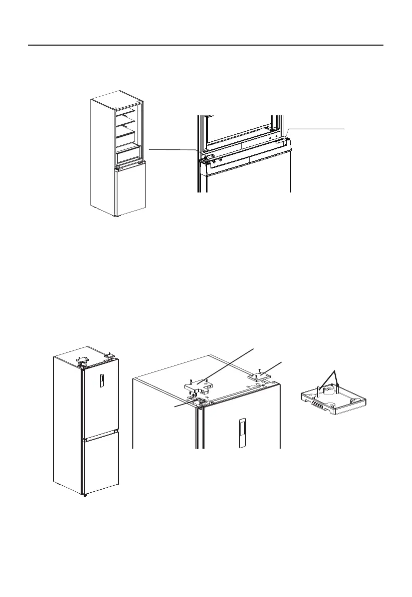 7. Install the replaced freezing door on the lower hinge then install the middle hinge