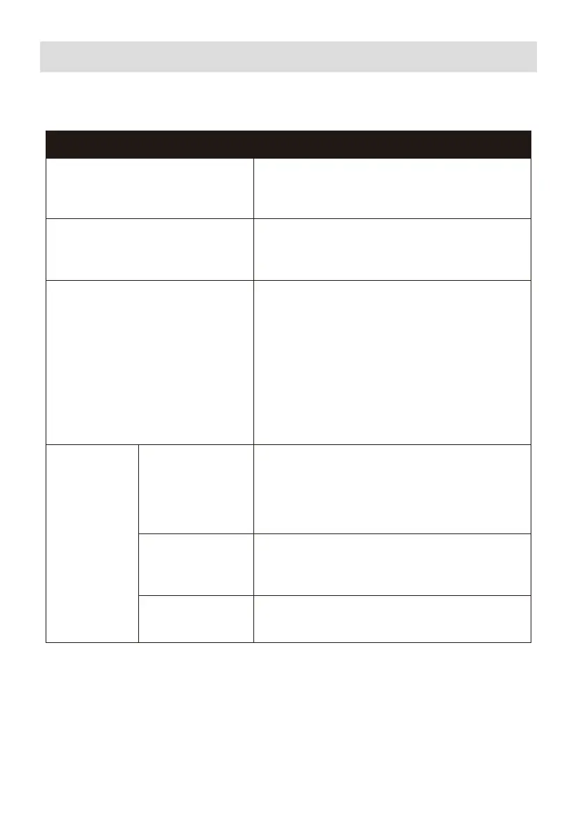 • 上表所列為用於診斷和檢查常見問題。如果問題無法解決,請將產品送往維修點或撥打服務電話