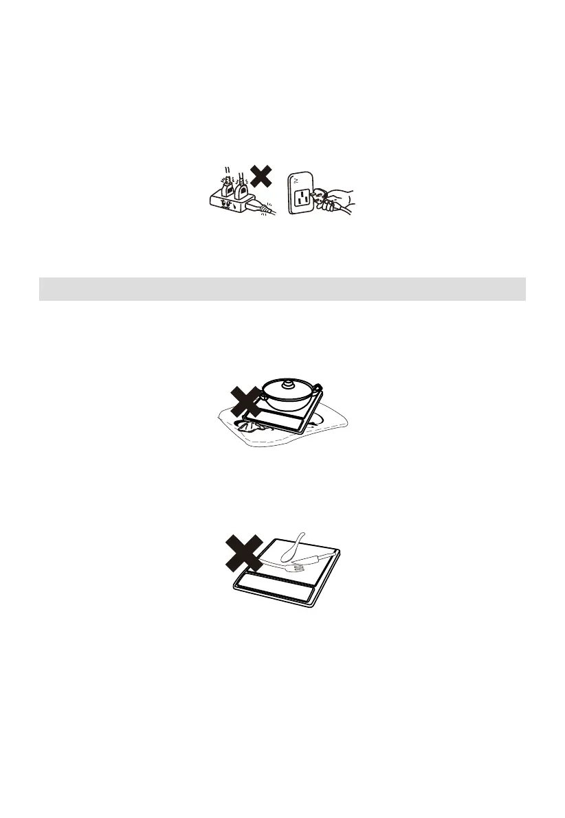 • Do not place the induction cooker onto a carpet, tablecloth or thin