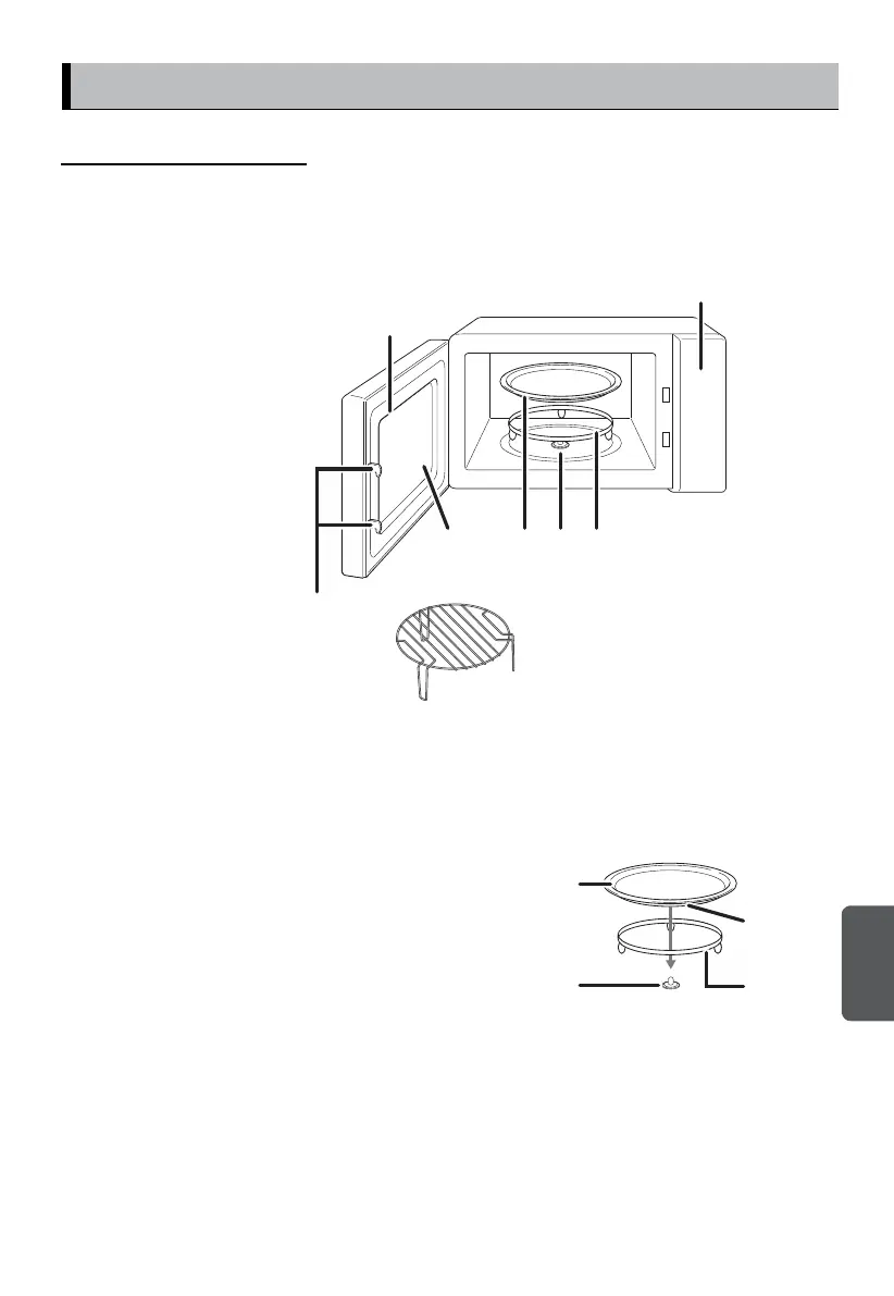 Názvy dílů a příslušenství trouby Vyjměte troubu a veškeré díly a materiály z