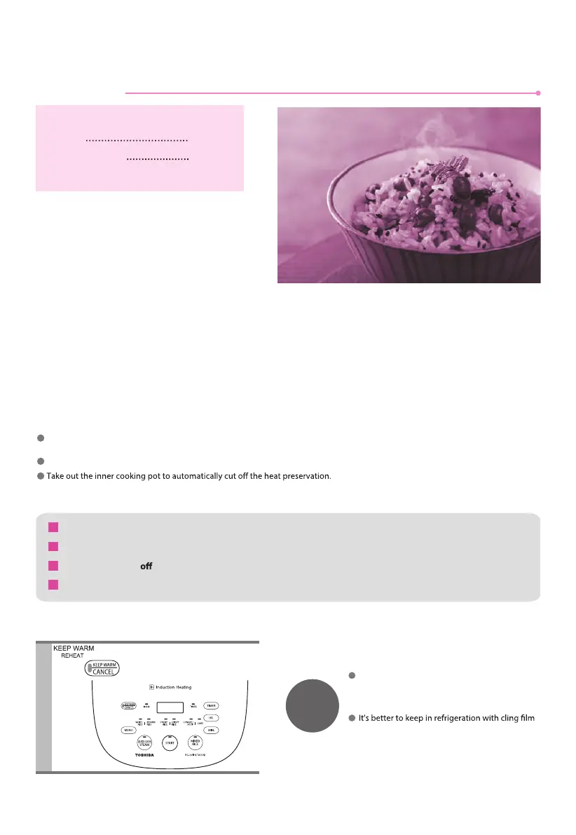Please do not turn keep warm function when there is rice in the pot (It will release unpleasant odor)