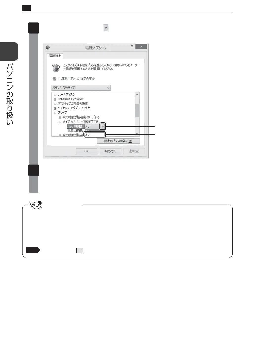 スリープを実行してから一定時間が経過すると、自動的に休止状態に移行するよう設定できます。
