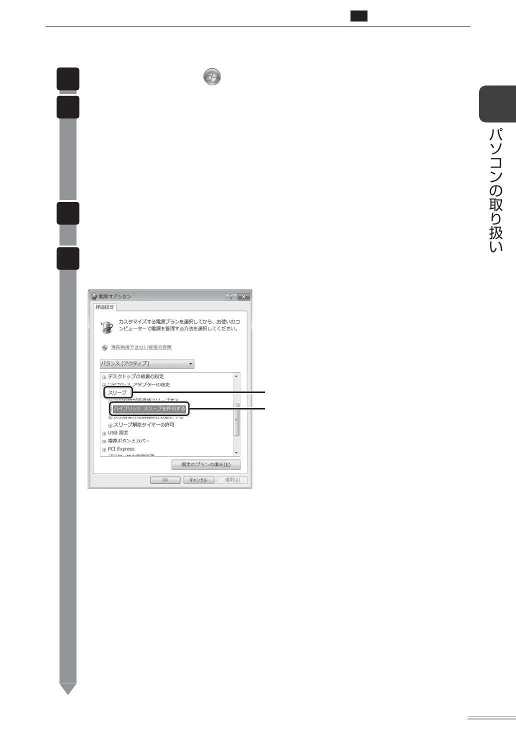 ハイブリッドスリープの設定は、電源プランごとに必要です。