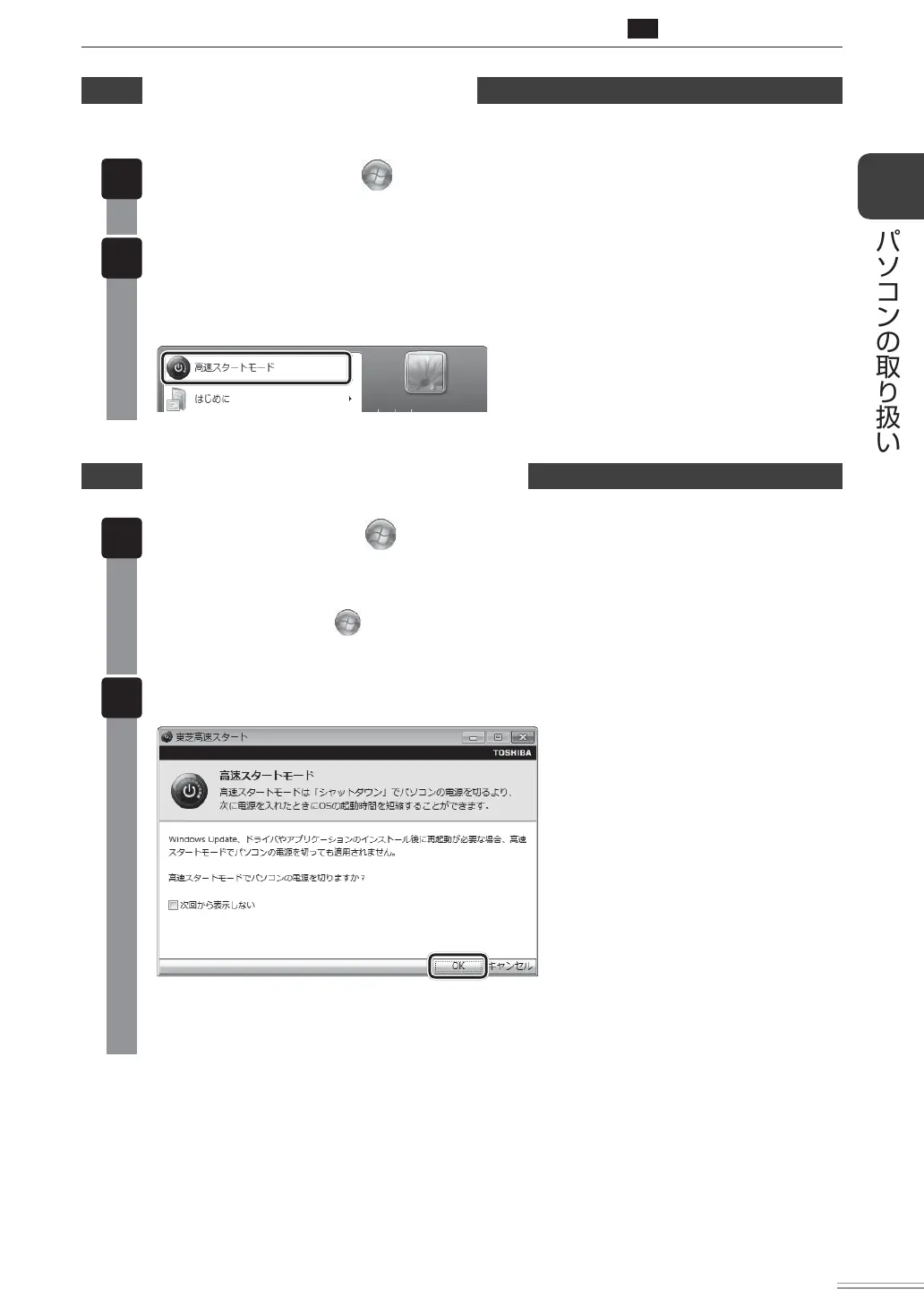 [スタート]ボタン( )をクリックし、[高速スタートモード]をク